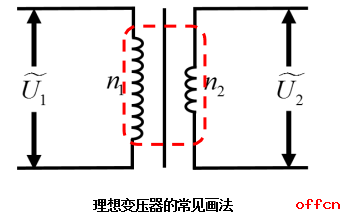 理想變壓器常畫為上圖所示的形式,紅框標出的部分為變壓器的核心部件,現(xiàn)將其工作原理畫出如下圖所示: