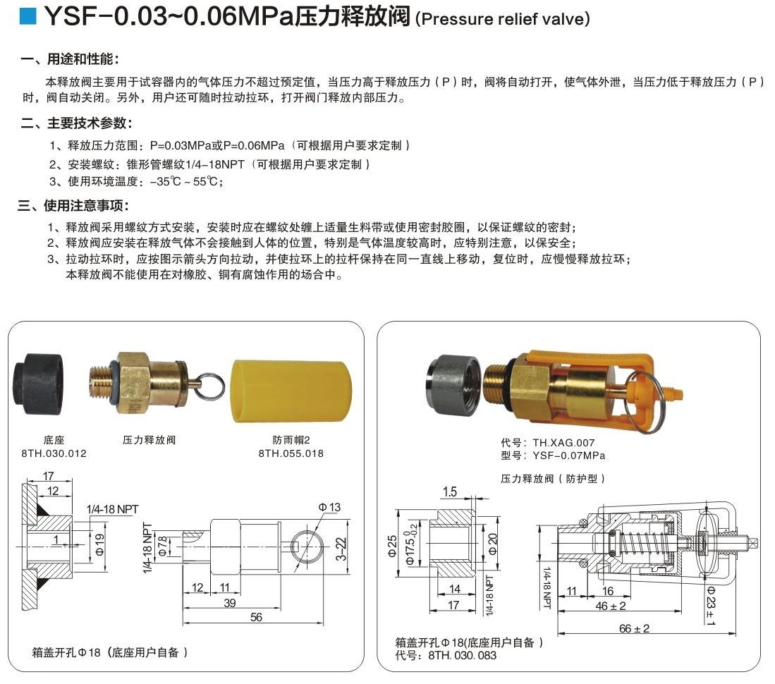 YSF-0.03MPa~0.06MPa 壓力釋放閥