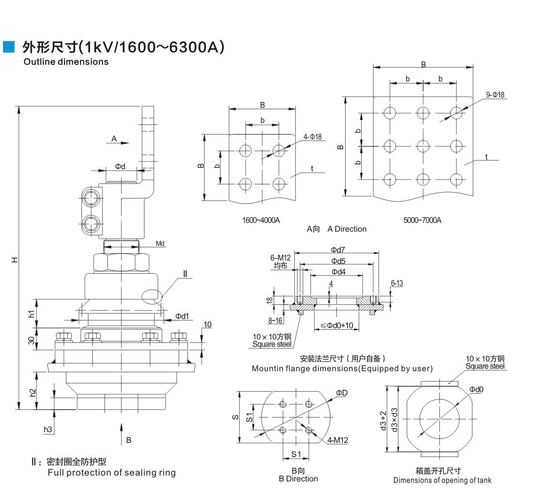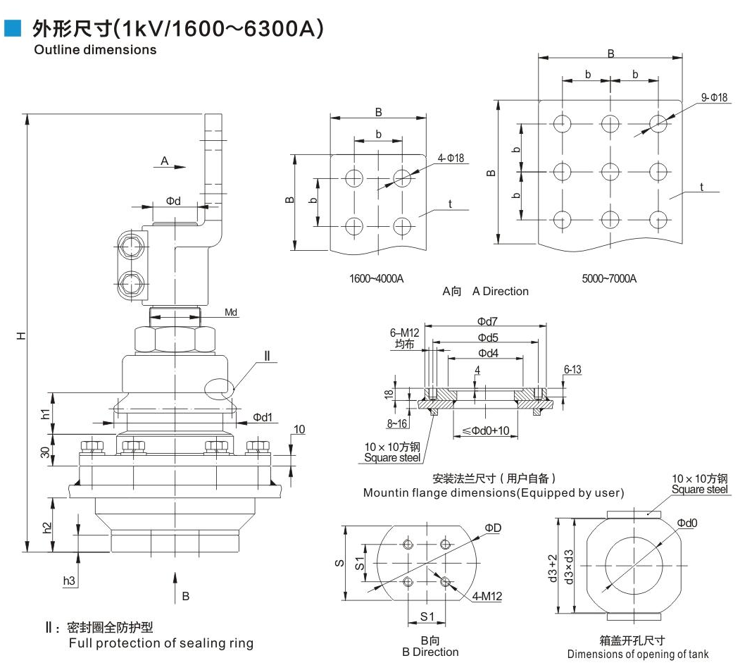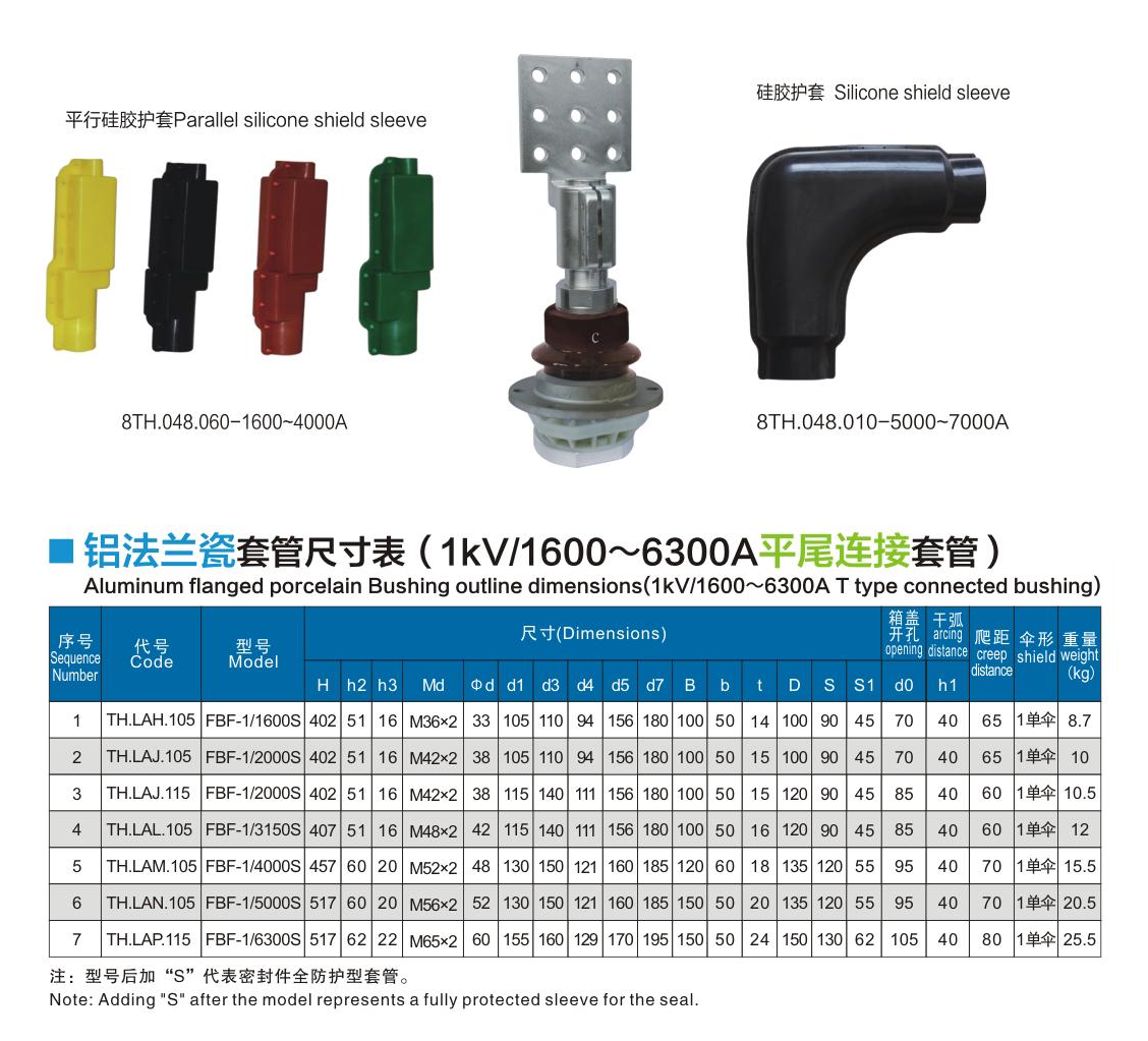 鋁法蘭瓷套管1kV/1600~6300A平尾連接套管