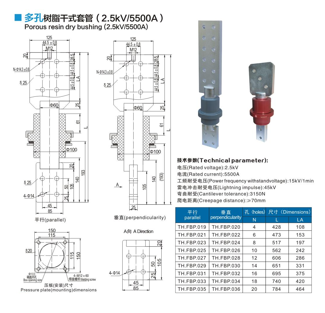 多孔樹脂干式套管2.5kV/5500A