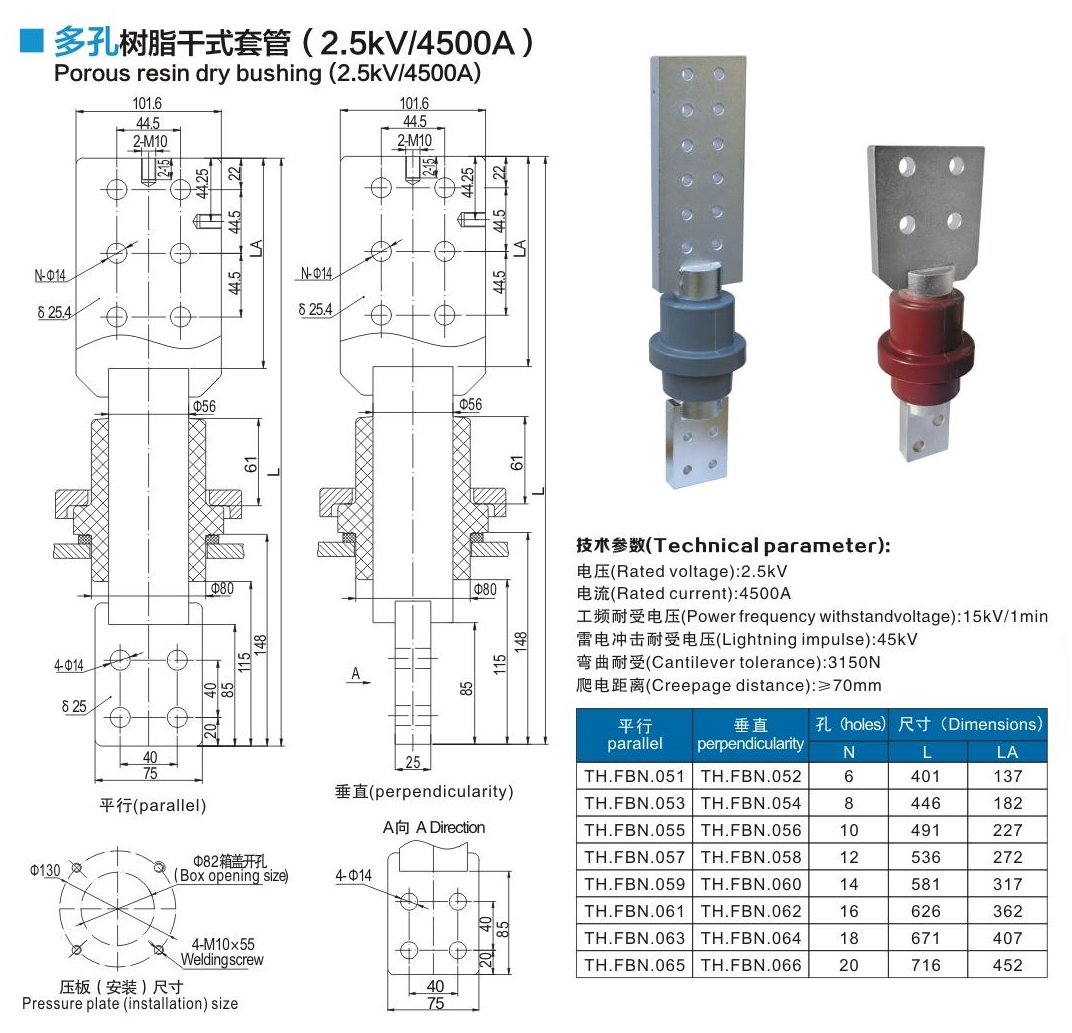 多孔樹脂干式套管2.5kV/4500A