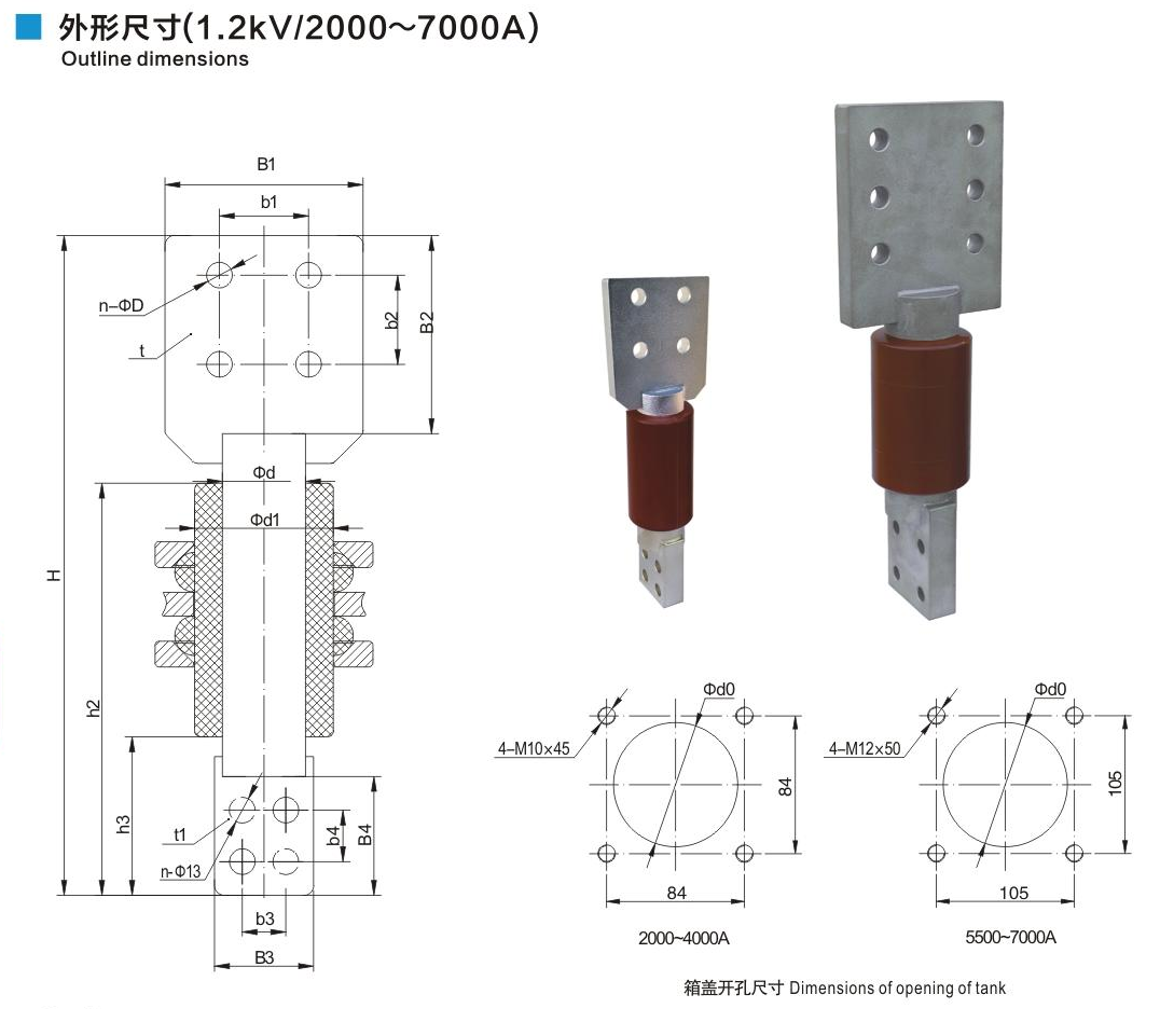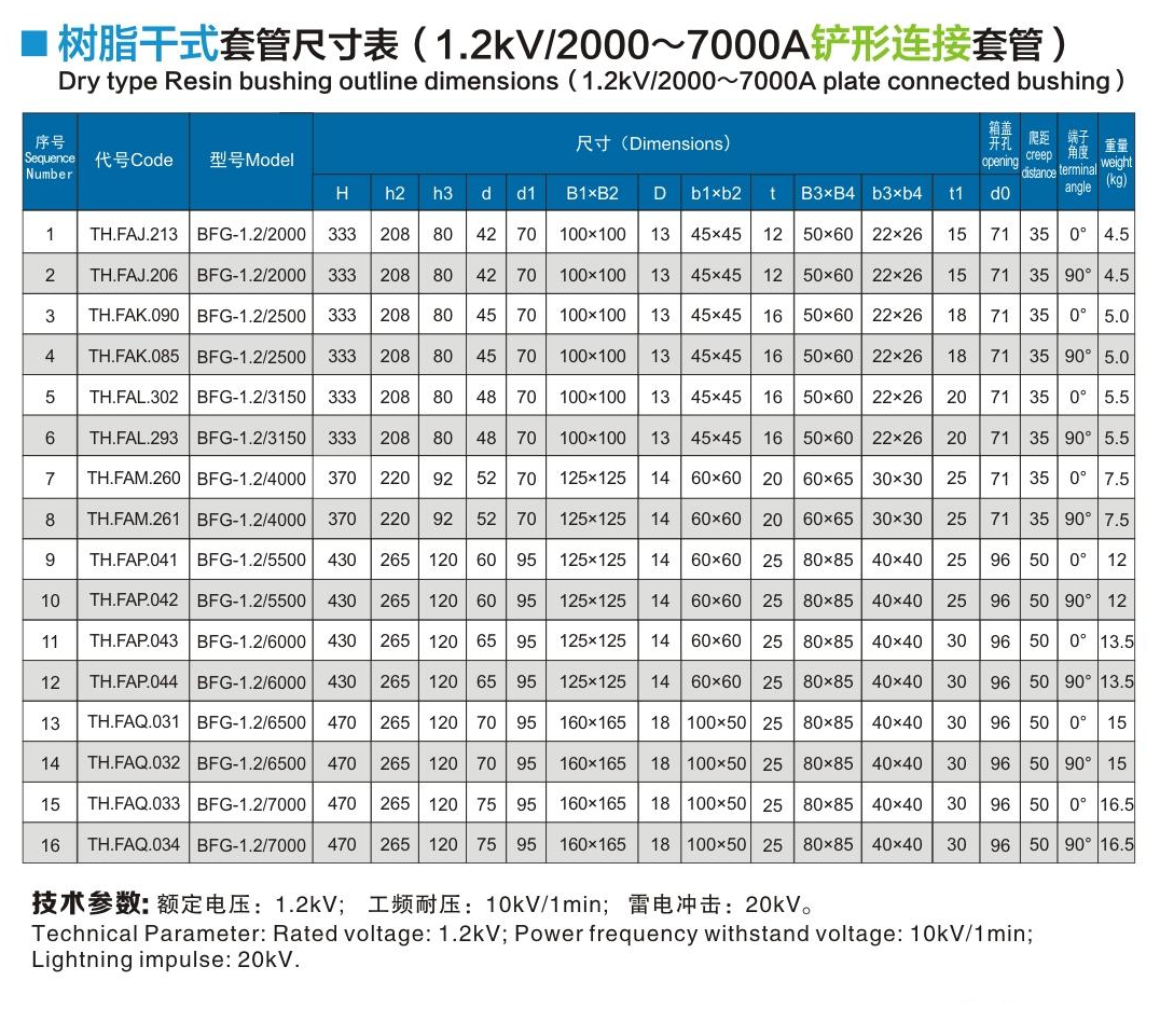 樹脂干式套管1.2kV/2000~7000A鏟形連接套管