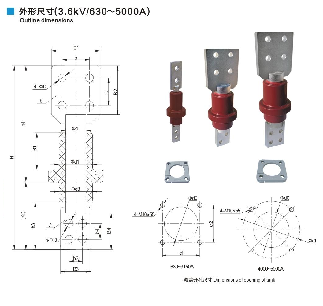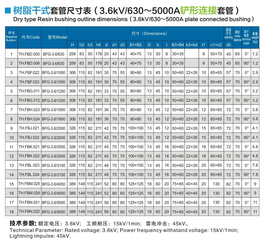 樹脂干式套管3.6kV/630~5000A鏟形連接套管