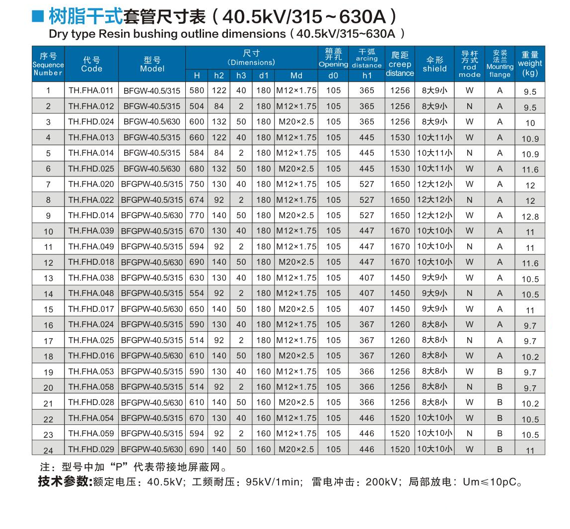 樹脂干式套管40.5kV/315~630A