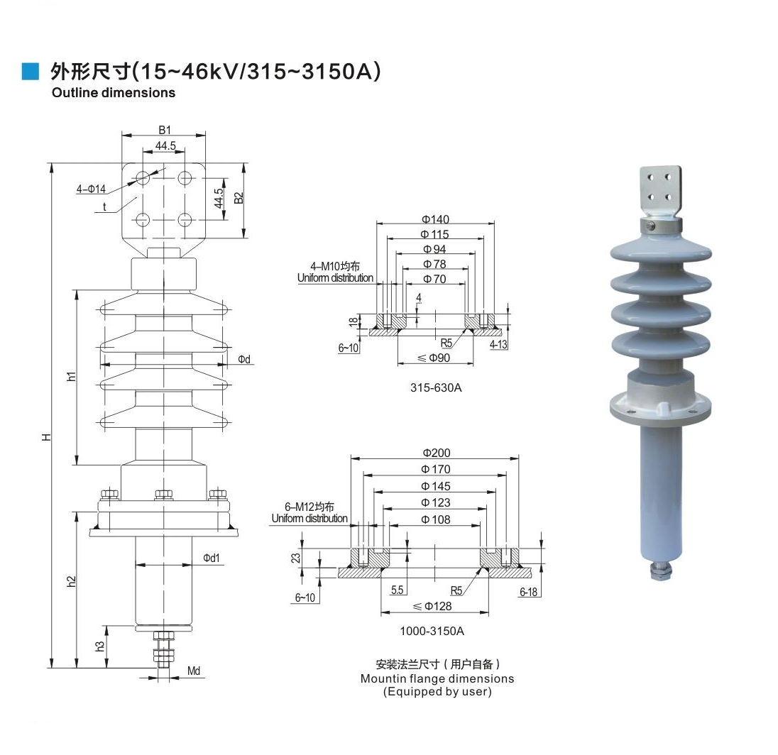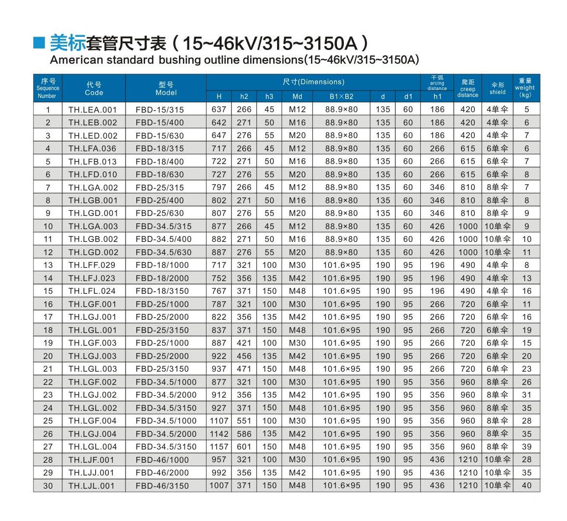 美標(biāo)套管15~46kV/315~3150A