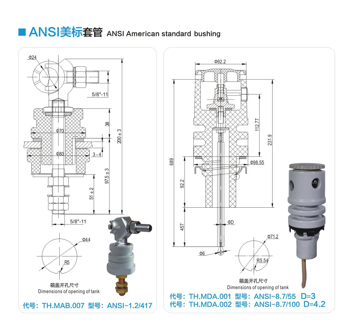ANSI美標(biāo)套管1.2kV/63~208A