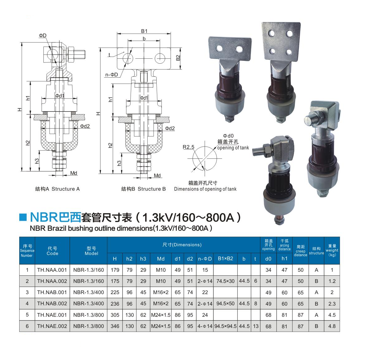 NBR巴西套管1.3kV/160~800A