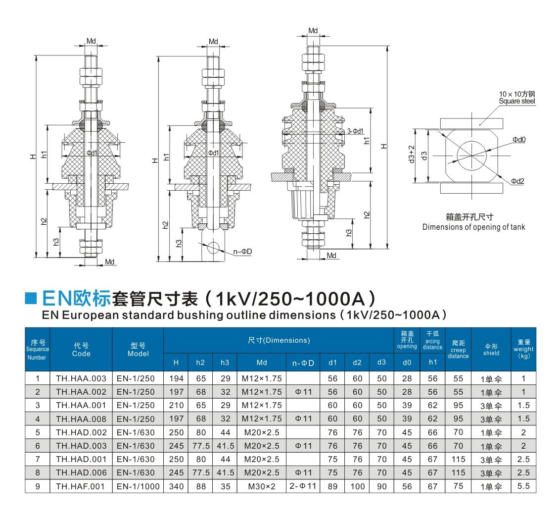 EN歐標套管1kV/250~1000A