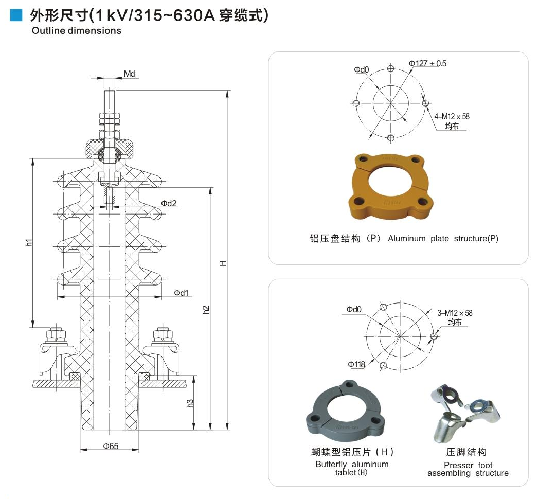 國網(wǎng)高壓套管10kV/100~400A穿纜式套管