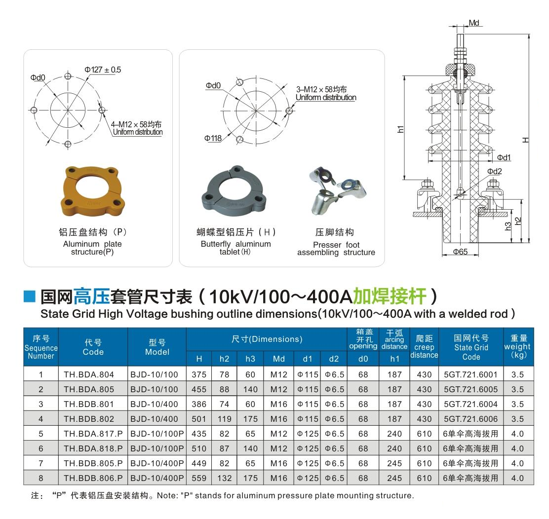 國網(wǎng)高壓套管10kV/100~400A加焊接桿